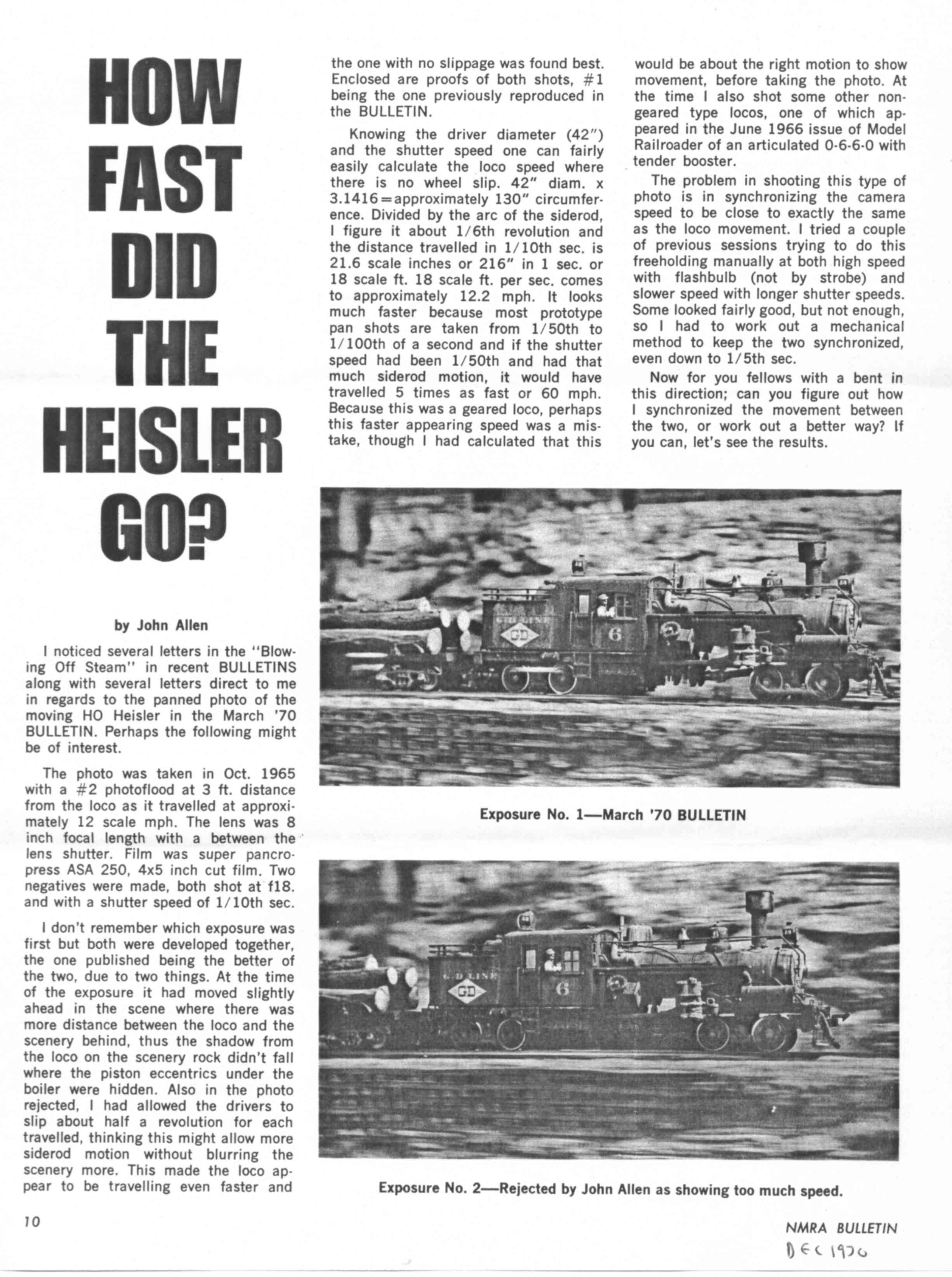 How Fast Did the Heisler Go?, Dec. 1970 NMRA Bulletin