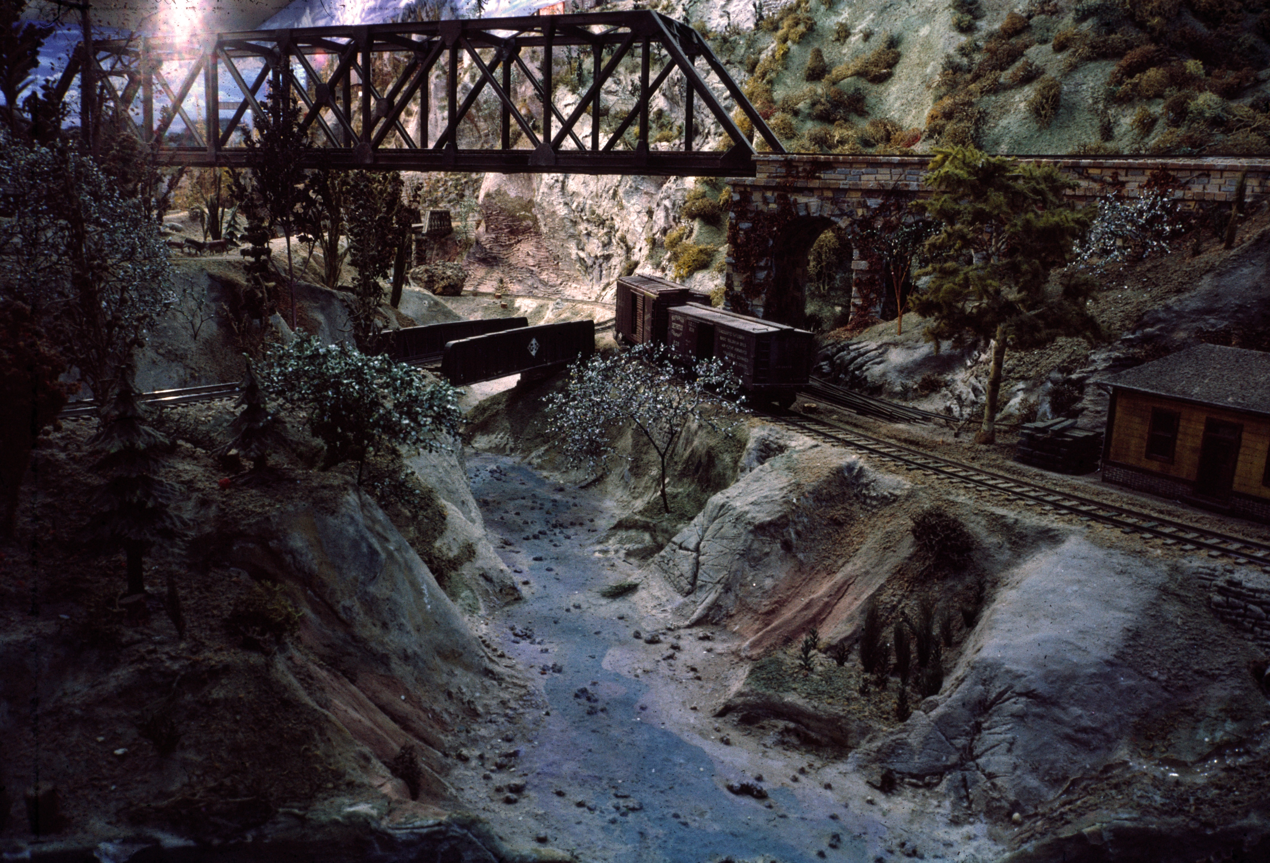 Squawbottom Creek in June of 1965. This area will soon be transformed into a very realistic logging scene. See slide #29 of G&D set #1 and page 25 of Kalmbach’s Model Railroading with John Allen. 6-65