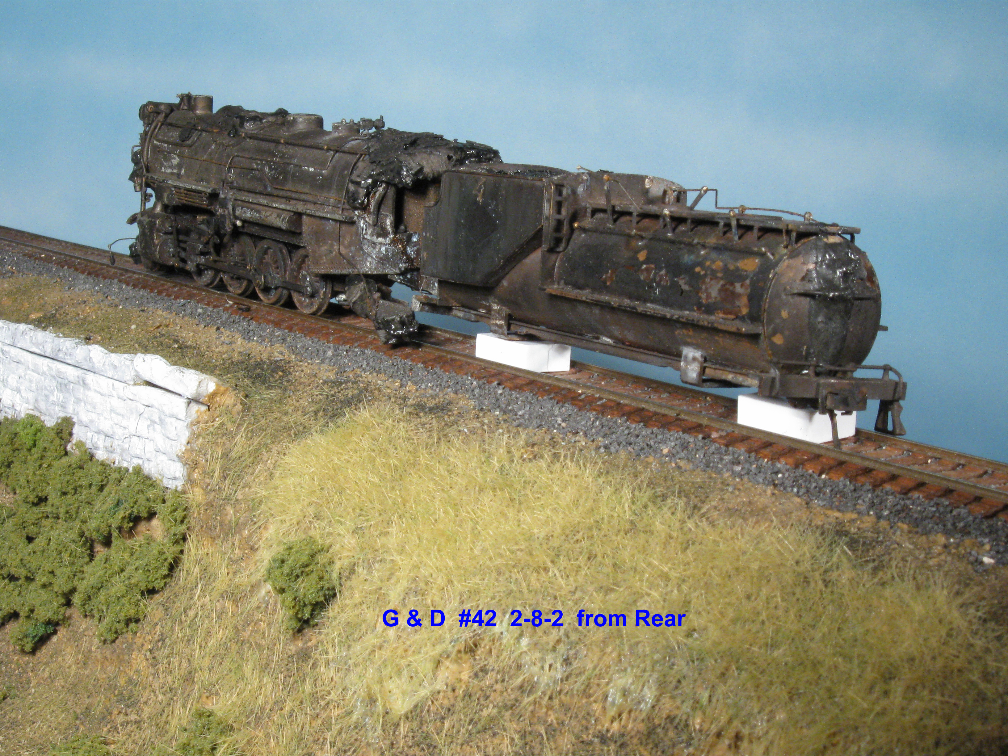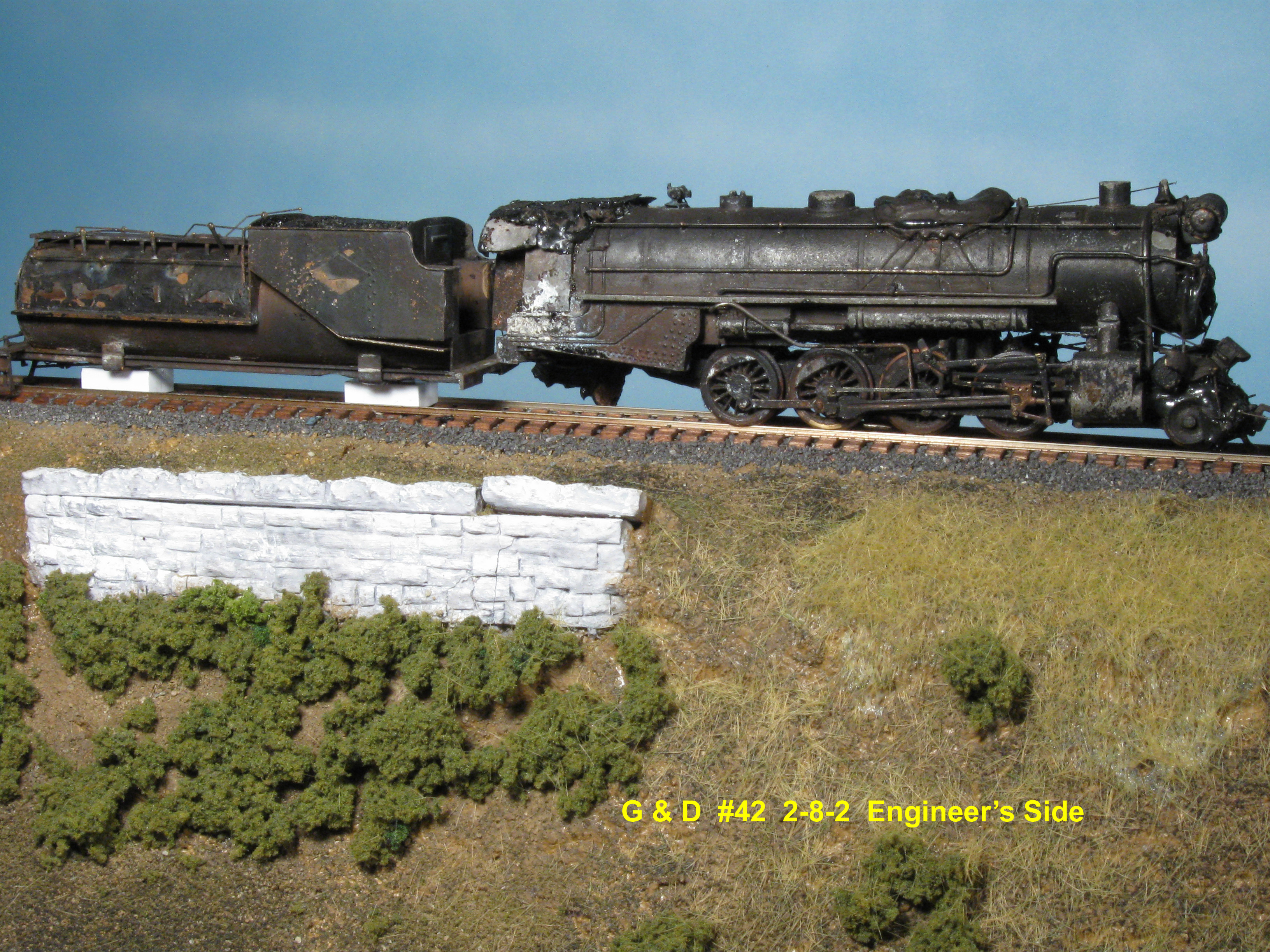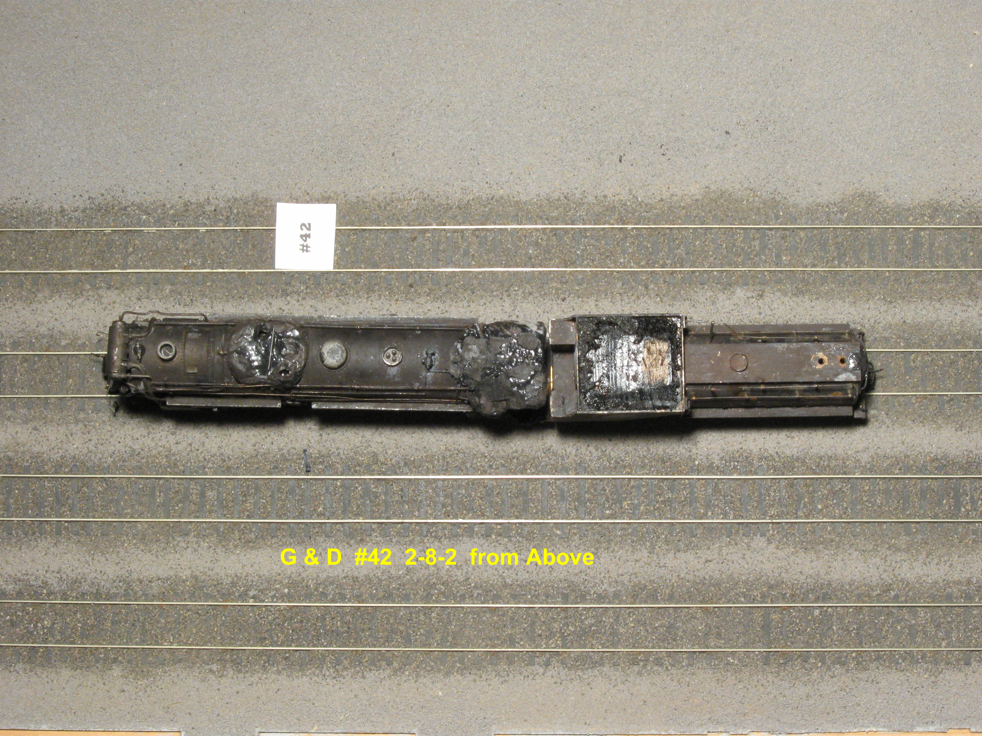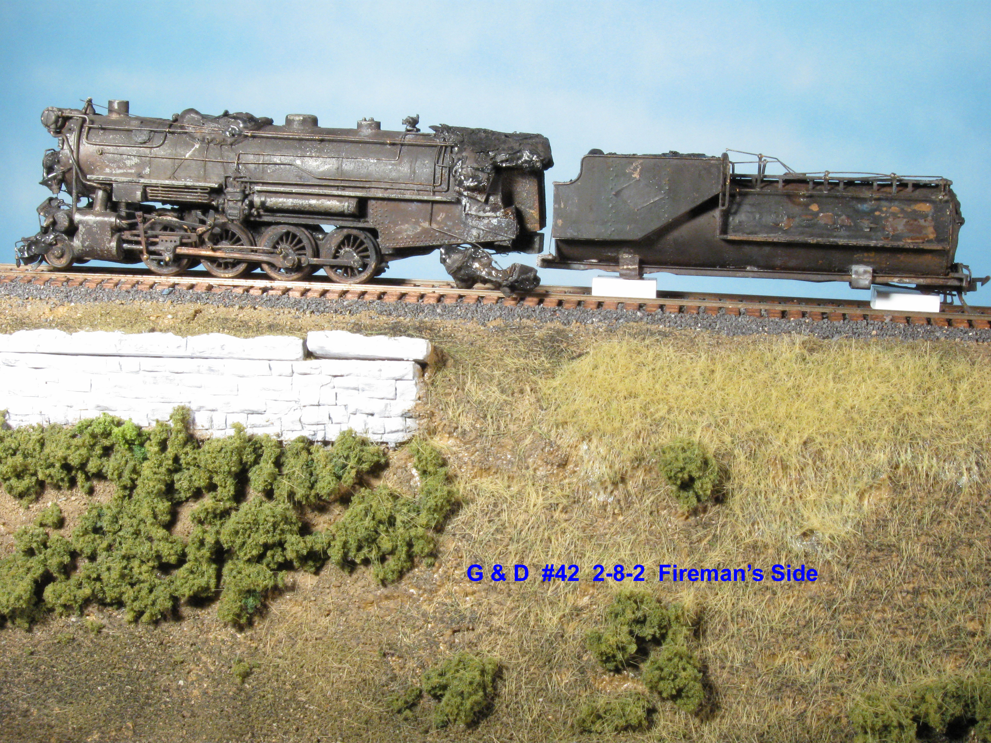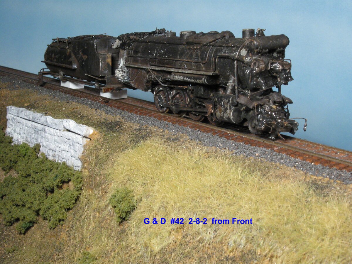 Engineer's side Engineer's side, front view Fireman's side, rear view Fireman's side top view 2-8-2 #40, United AT&SF prototype2-8-4 #45, modified John English plastic Berkshire with a Sims Lab mechanism