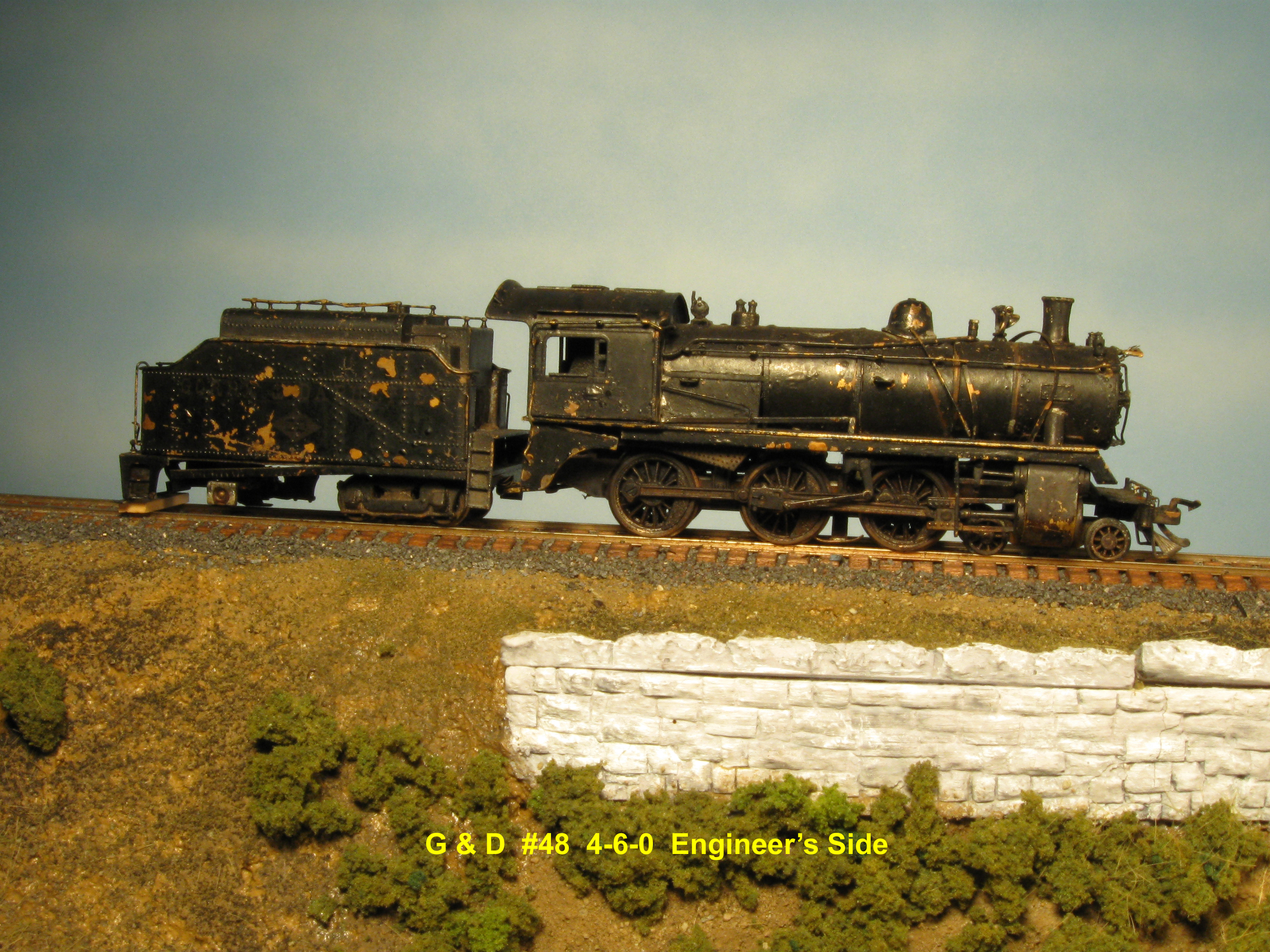 Fireman's side Fireman's side, rear view Engineer's side Engineer's side, front view top view 2-8-4 #45, modified John English plastic Berkshire with a Sims Lab mechanism4-6-0 #49, Varney Casey Jones with a United UP 2-8-0 tender