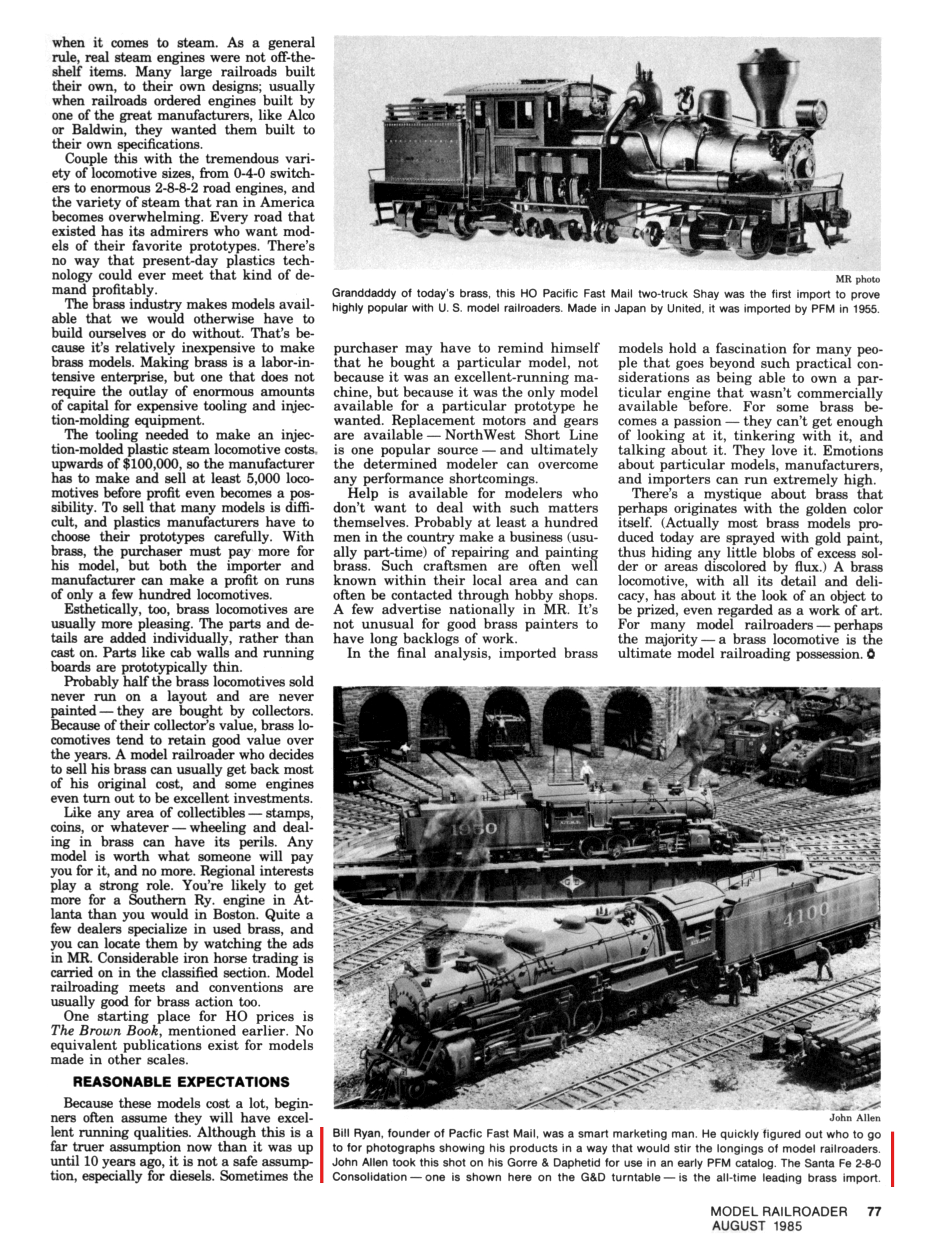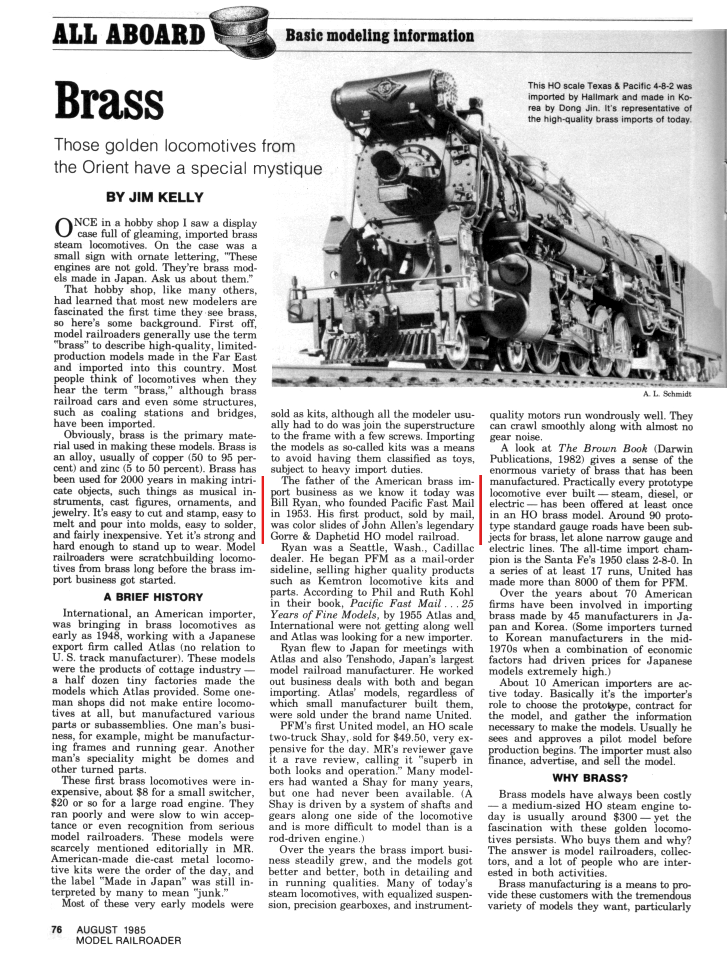 Feature: All Aboard: Brass by Jim Kelly, page 1 of 2 page 2 of 2 isolated page 2 photo at 600 DPI (GDRP image of the PFM catalog color photo) July 1985September 1986