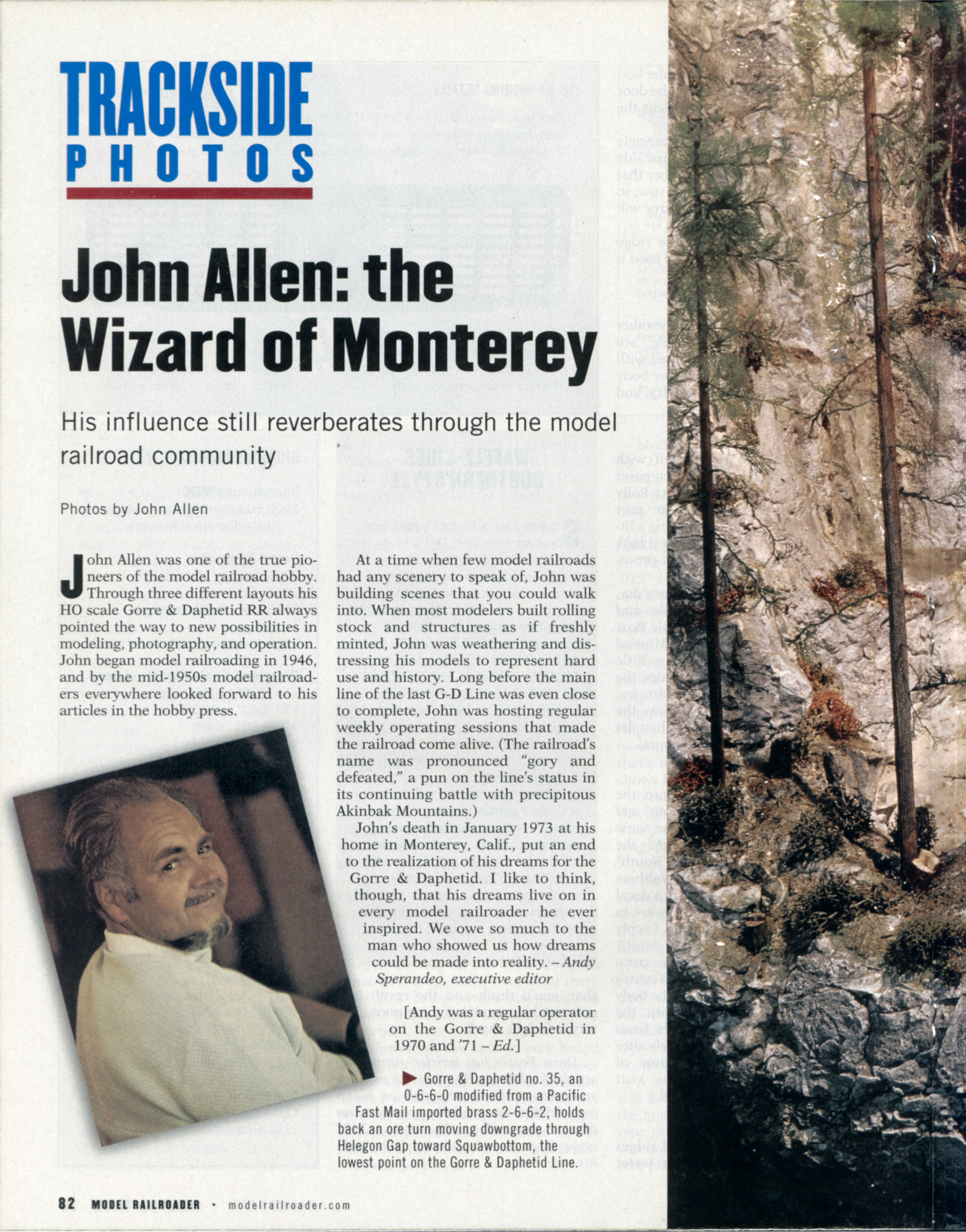 page 4 of 6; photo caption: Just as John's stunning mountain scenery inspired model railroaders around the world, so did his city scenes and structures, such as…