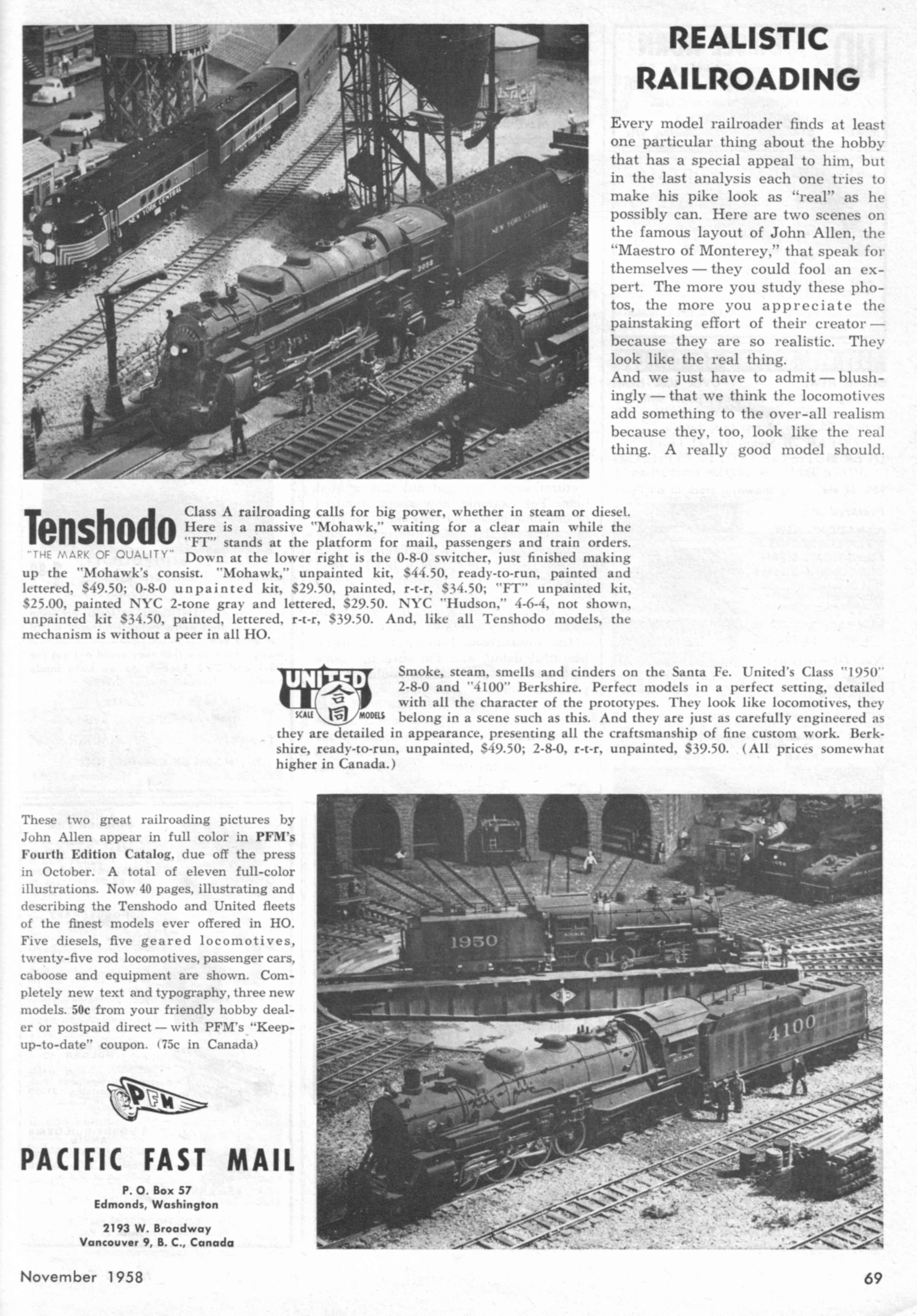 PFM ad, two photos on 3rd G&D, Nov. 1958 MR