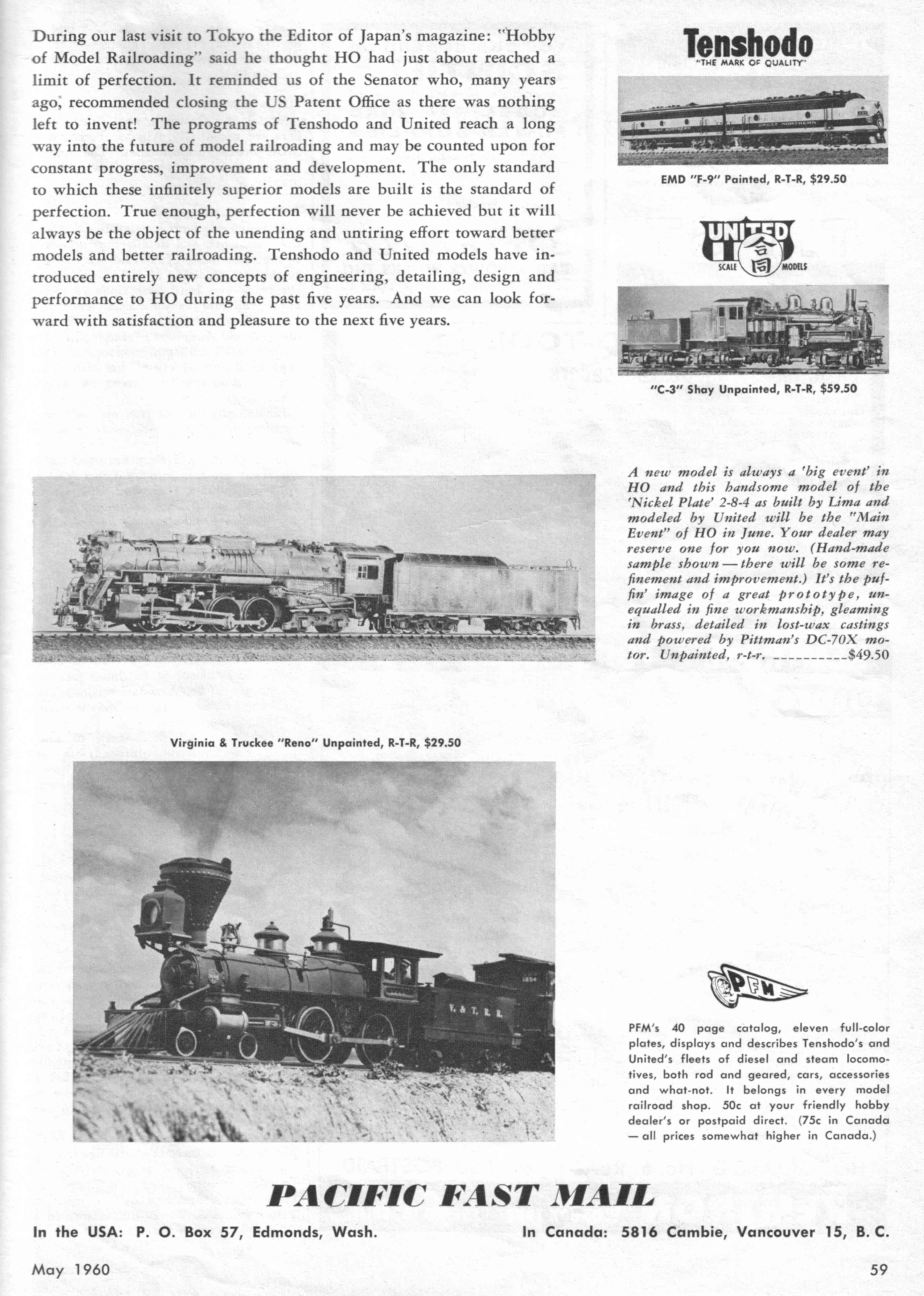 PFM ad, JA photo of V&T 4-4-0, May 1960 MR - compare to Jan. 1960 RMC cover
