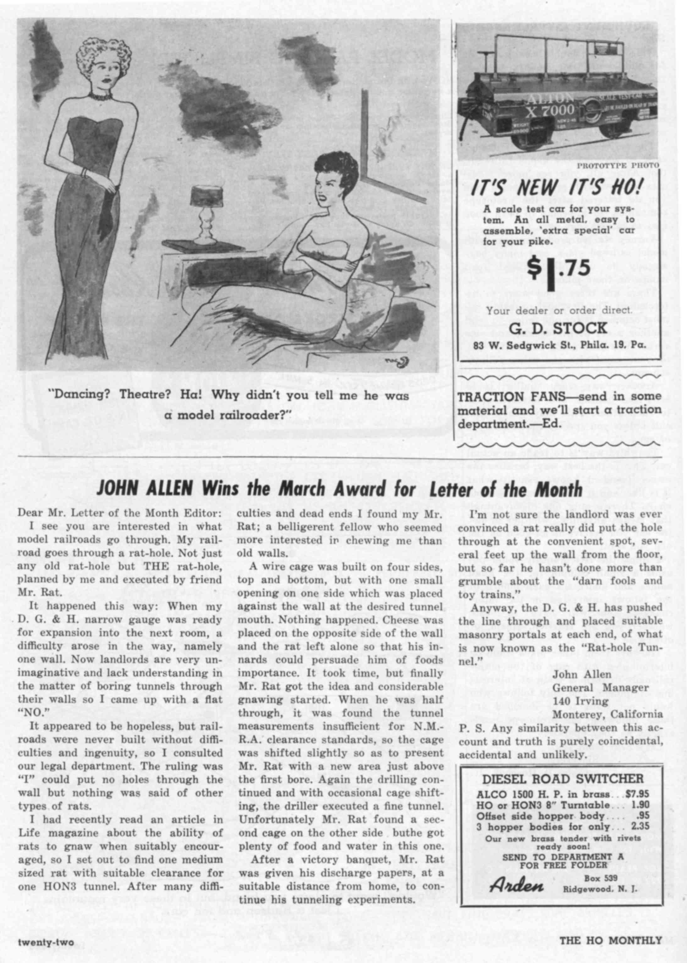 John Allen Wins the March Award for Letter of the Month, March 1950 HO Monthly