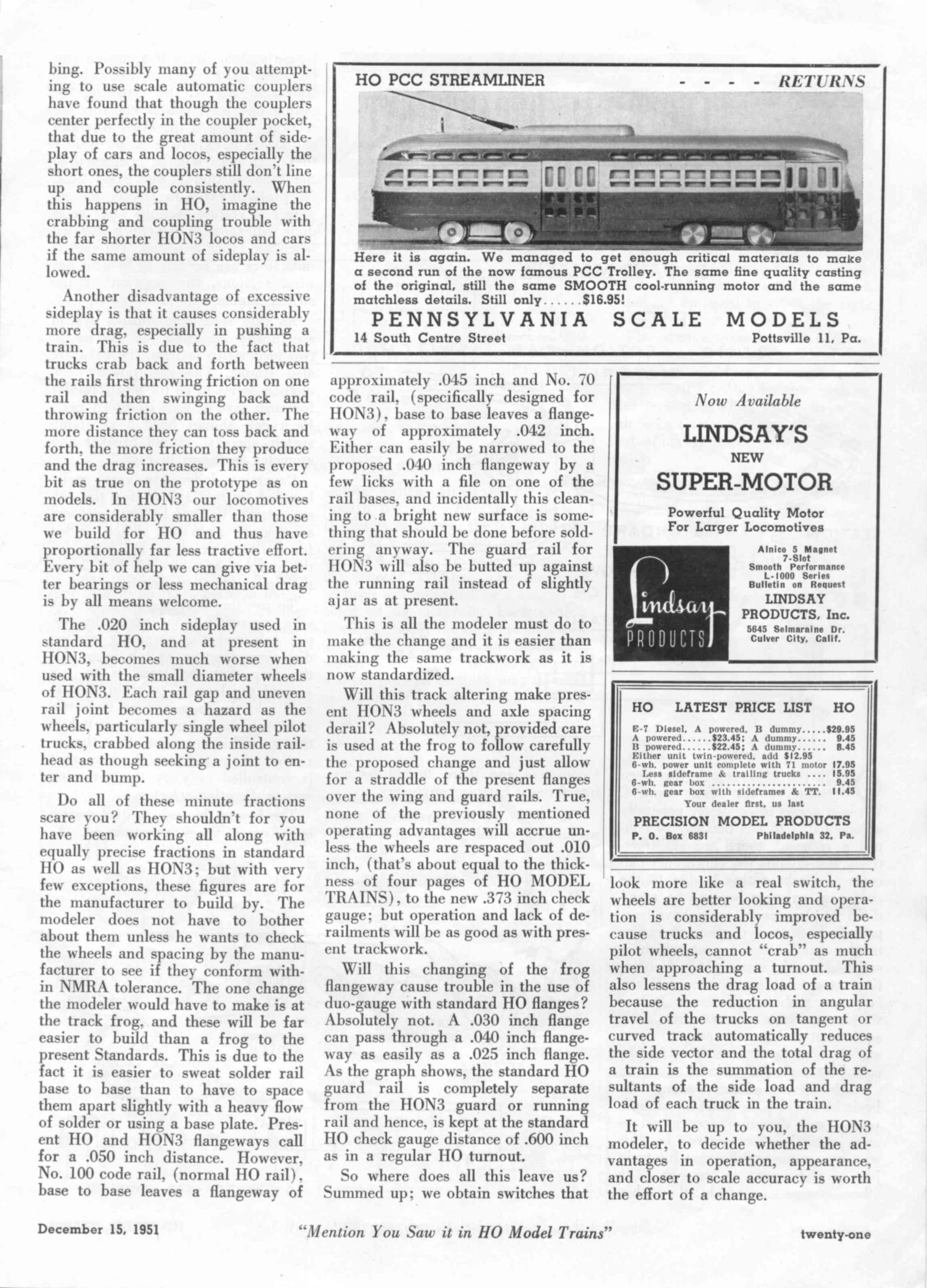 Why an HOn3 Standards Revision, 4 of 4, Dec. 1951 HO Monthly