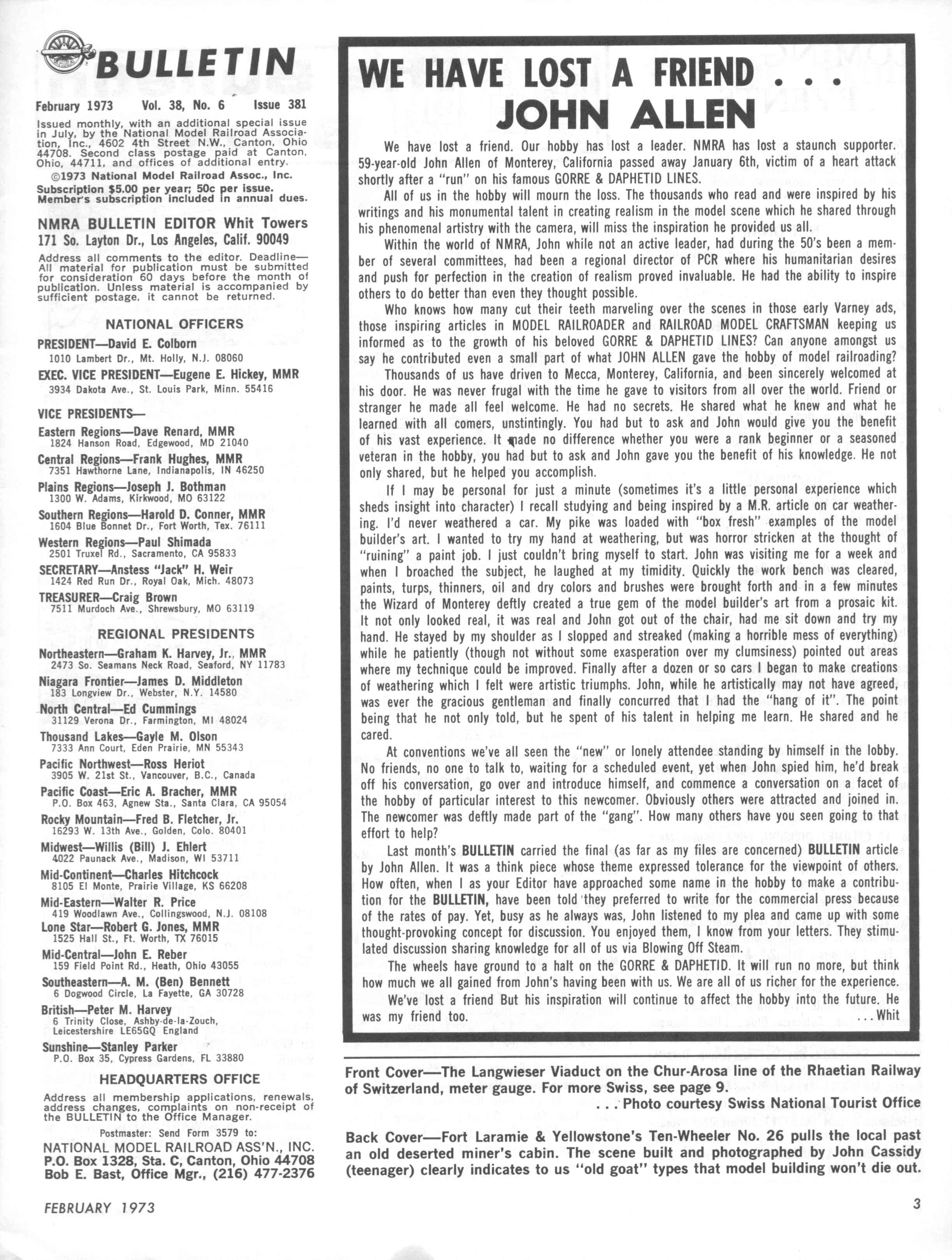 We Have Lost a Friend - John Allen Obituary by Whit Towers, Feb. 1973 NMRA Bulletin