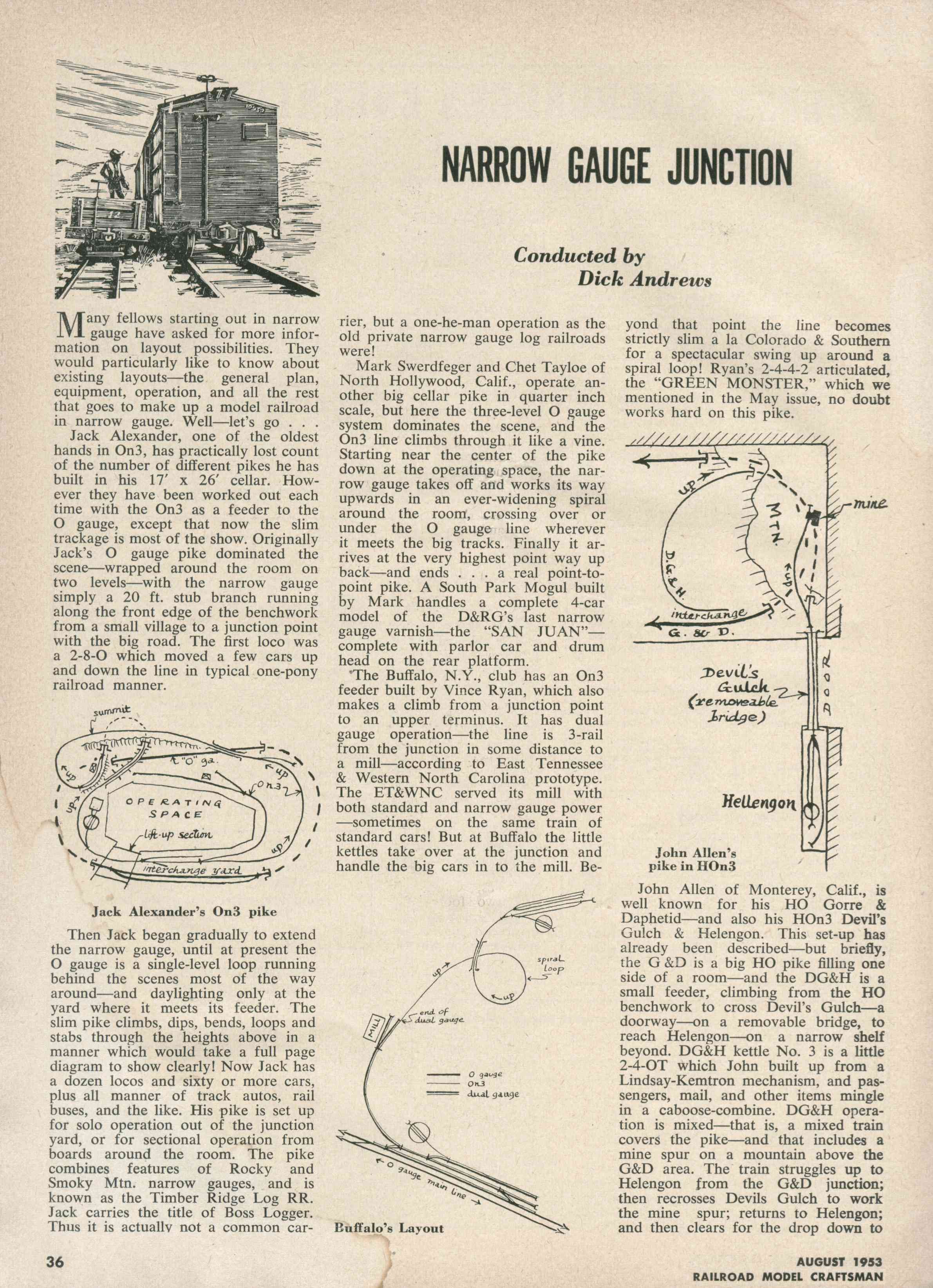 RMC-19530600-039-600_70 * June 1953 Narrow Gauge Junction column; construction of DG&H #3, and offer for sale of 140 Irving with model railroad * 2797 x 1795 * (189KB)