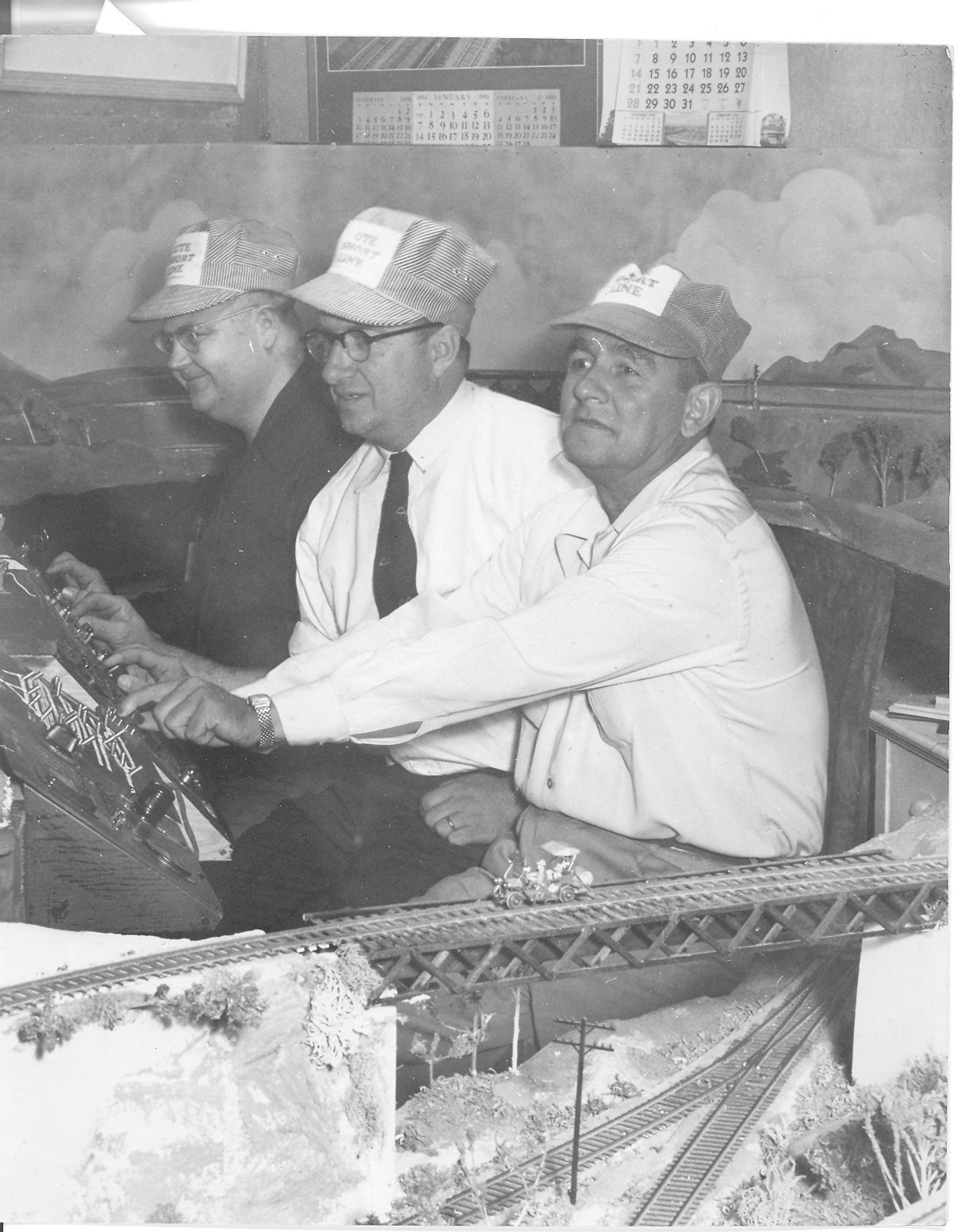 Trio running Trains - John Allen, Earl Cochran, and Bill McClanahan, Jan. 1951