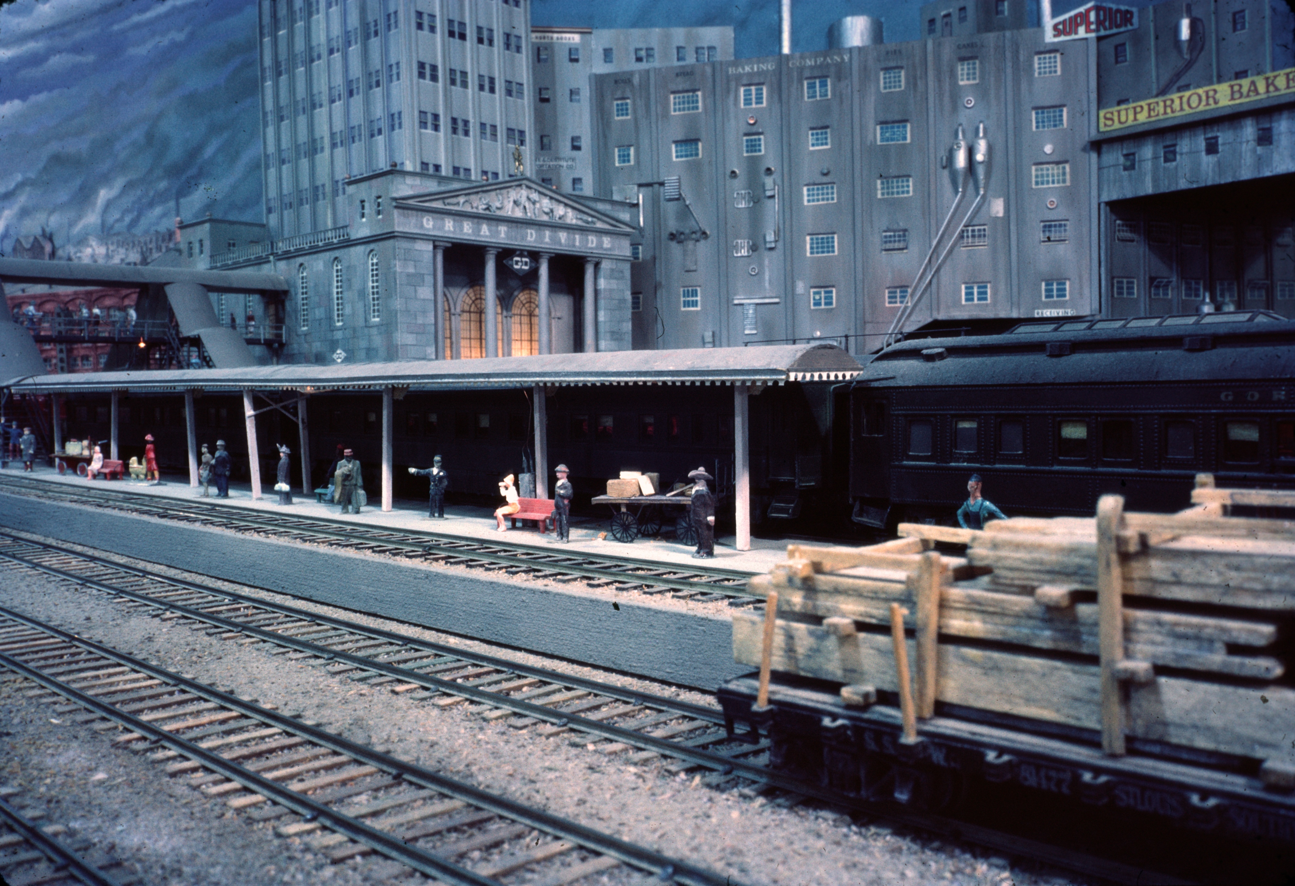 The main passenger depot in Great Divide. The freight yard in the foreground.