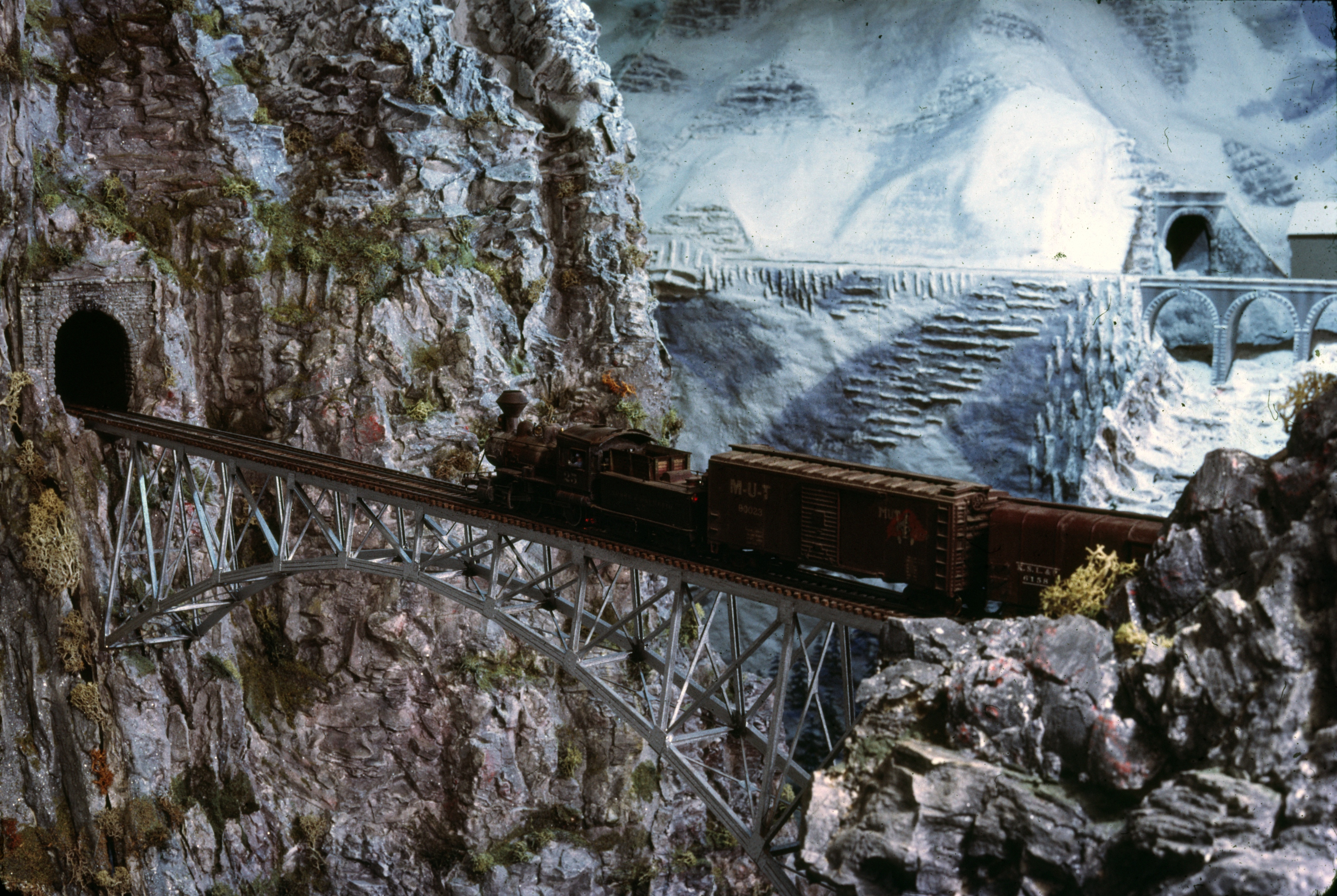 Entering tunnel en route to Cold Shoulder. Arch bridge crosses Squawbottom Creek far below in Helengon Gap.