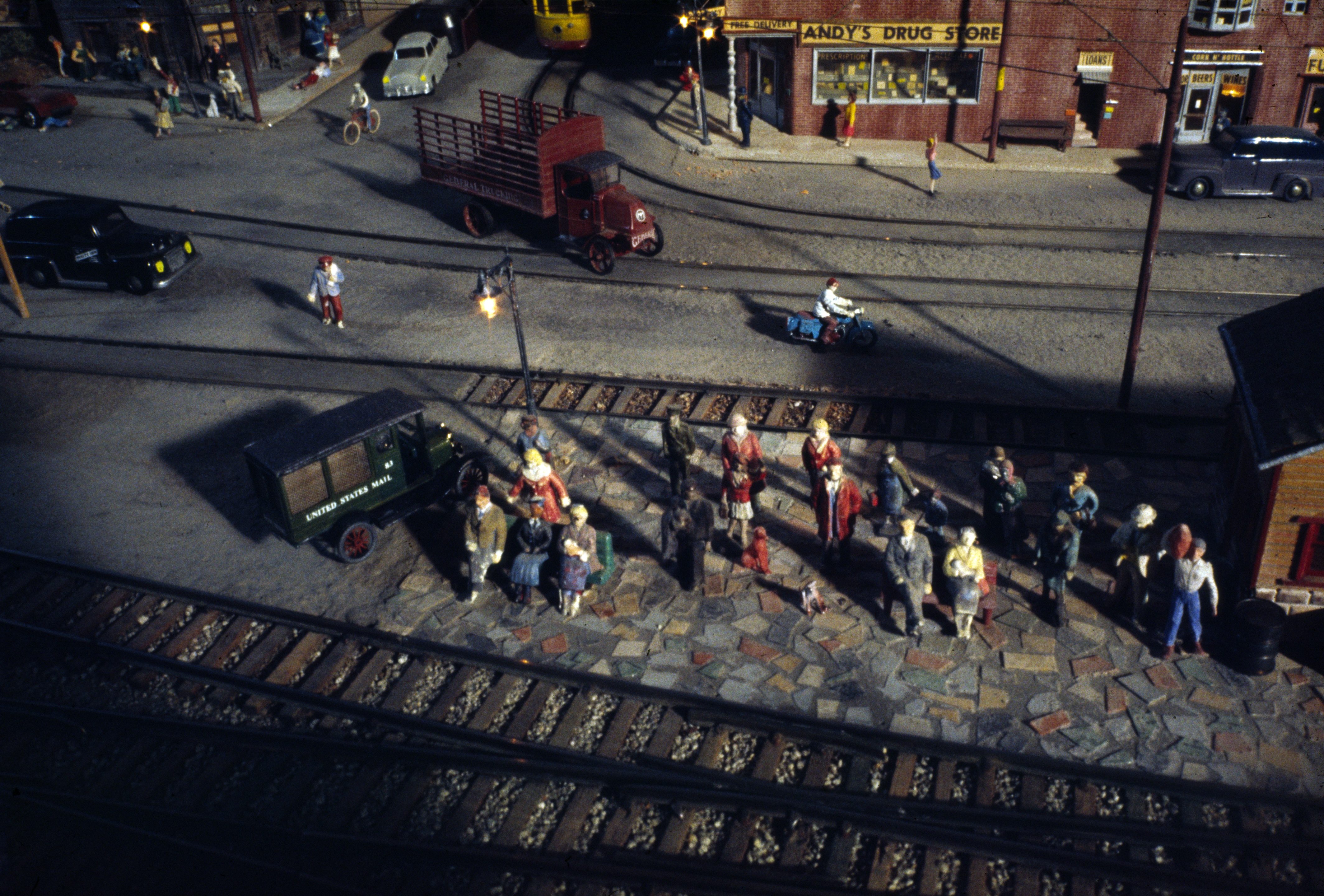 The Austin Street Station with a throng of commuters waiting patiently. 6-70
