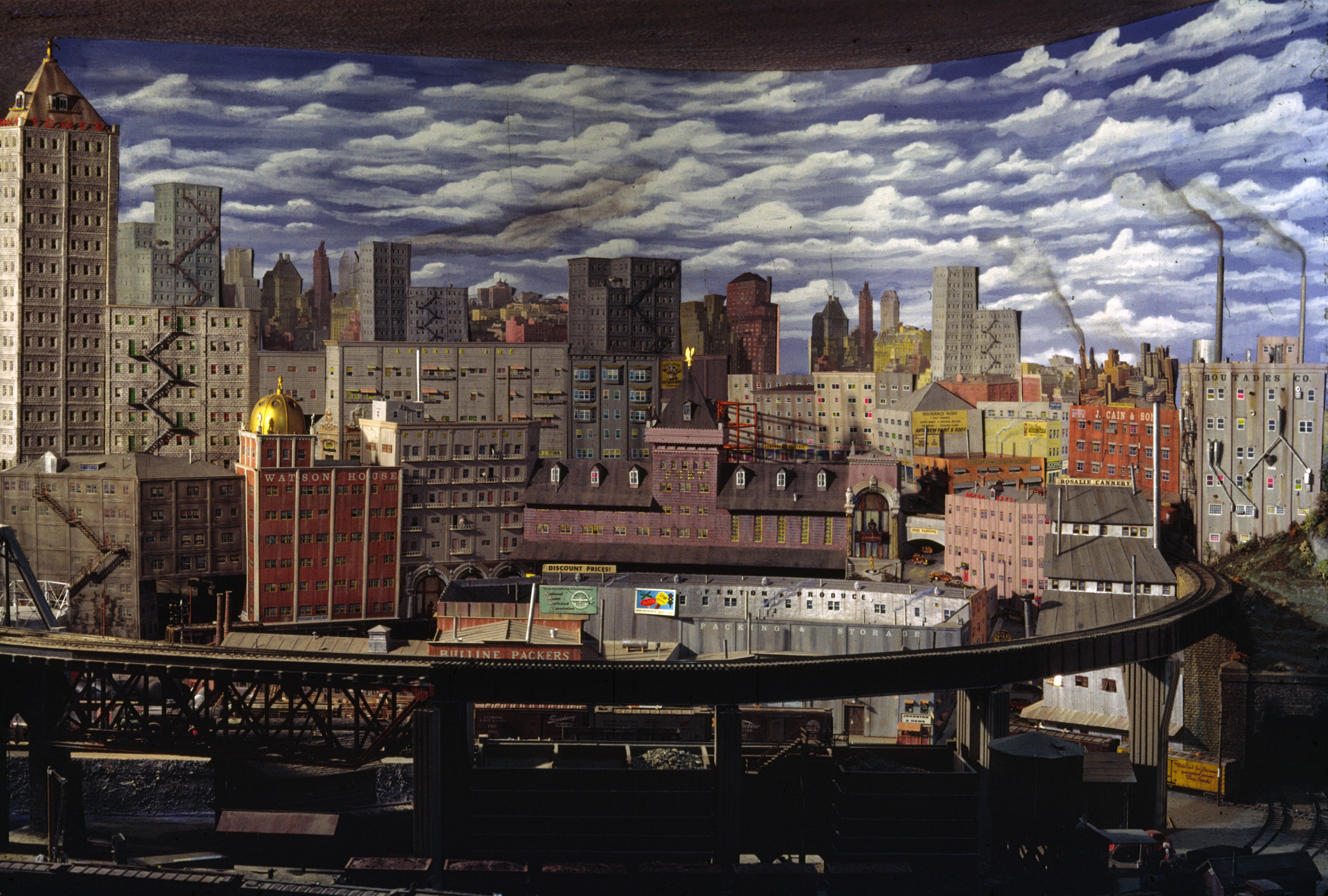 The skyline at the bustling metropolis of Port. At the far left is Whit’s Tower, named after the former editor of the NMRA Bulletin. 9-69