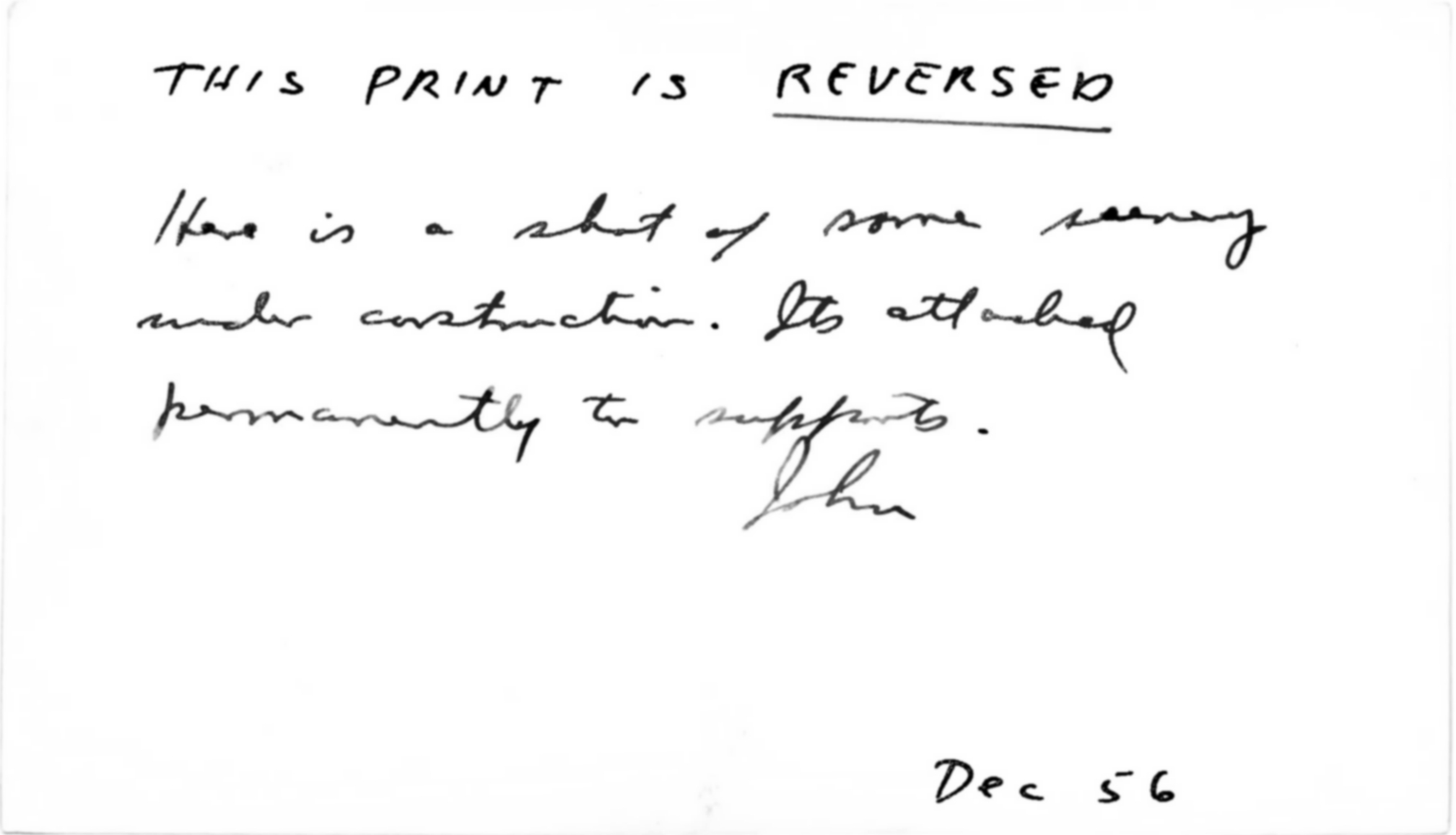 March 1957 photo comments - John explaining that the print is reversed